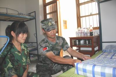 为了让2011秋季军训的同学尽快熟悉我校宿舍寝室管理规则制度进入军训状态。2011年8月25日军训教官组织了一场“内务训练”活动。同学们都有着极高的参与热情,个寝室都呈现出热火朝天的忙碌景象。