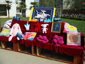 扎染古称扎缬、绞缬和染缬,是中国民间传统而独特的手工染色工艺之一。它是通过纱、线、绳等工具,对织物进行宽、窄、松、紧、疏、密的扎、缝、缚、缀、夹等形式将织物部分扎结起来的一种染色方法,可以是规则纹样也又可以染出具象图案的绚丽色彩的精美工艺品,图案产生自然晕纹,凝重素雅,稚拙古朴,新颖别致。产品有服装、民族包、帽子、手巾、围巾、桌巾、门帘、床上用品等上百个品种,效果古朴典雅,别具一格。