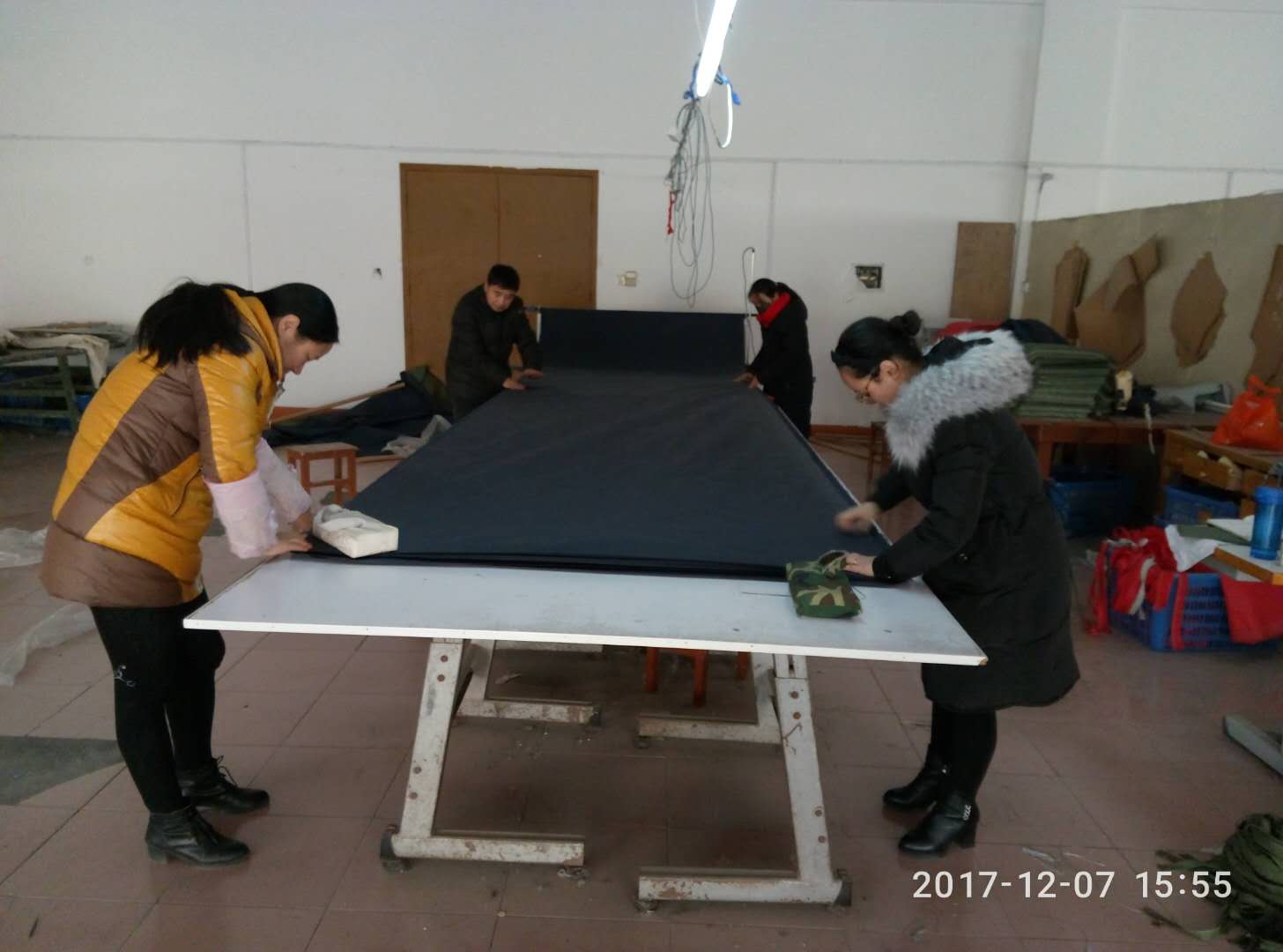 服装专业积极承担招生宣传袋制作工作,老师们正在铺布裁剪招生宣传袋,为我校招生工作做前期准备。