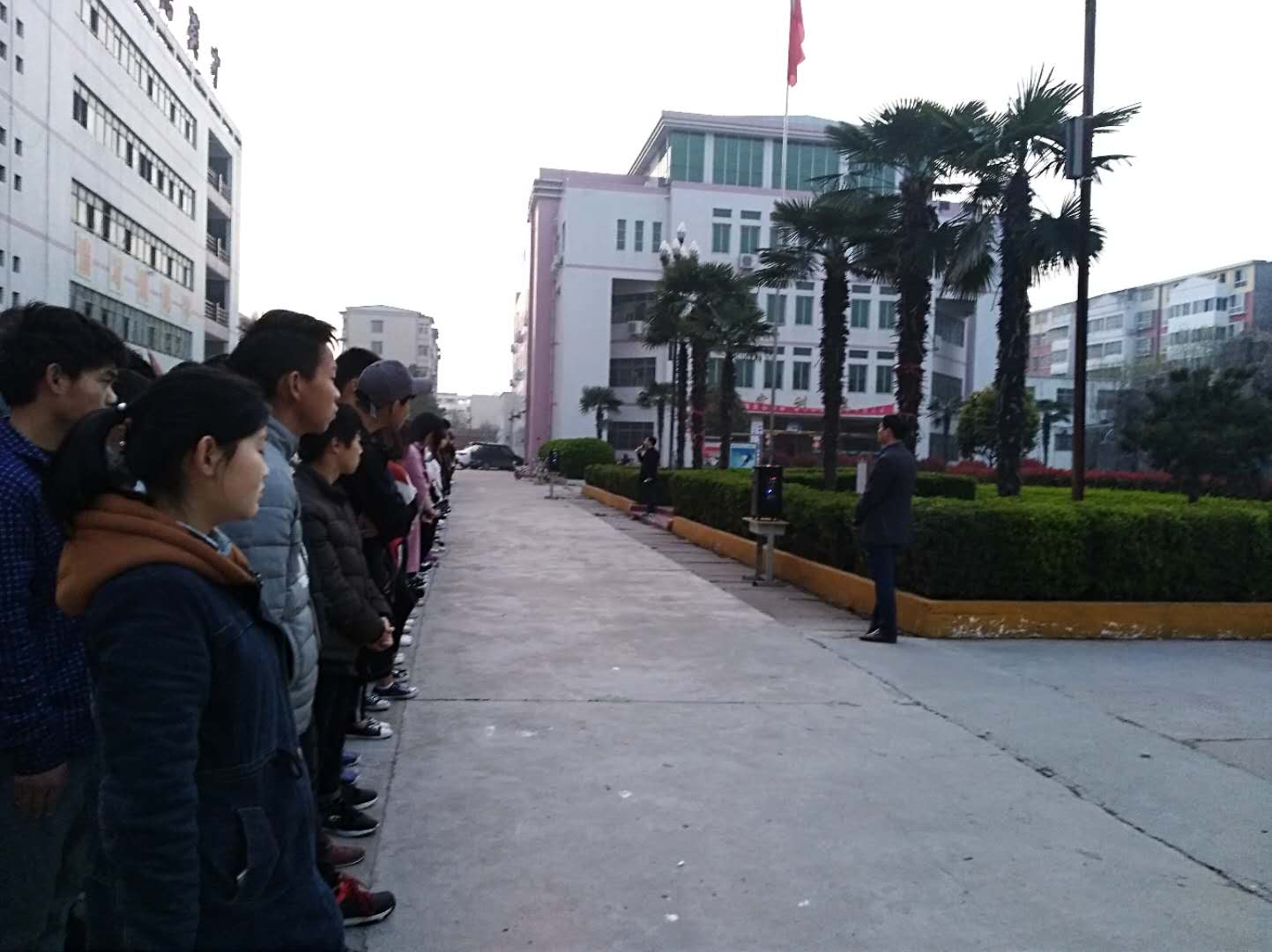 学生在认真聆听汪主任讲话