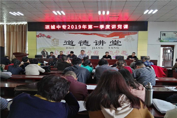 为严格落实习近平总书记关于新时代党建工作指示精神,贯彻新时代党的建设要求,4月4日,项城中专在五楼会议室开展了2019年第一季度讲党课活动,全校老师和领导班子成员参加了学习。