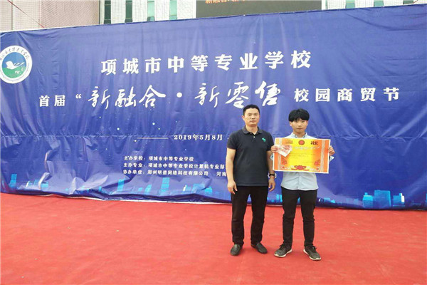 经过了一天的忙碌,项城中专首届“新融合·新零售”校园商贸节圆满结束。经专业人员的评比,评出了一等奖一名,二等奖两名,三等奖三名,最佳创意奖三名。计算机专业部周主任为参赛队员颁发了证书和奖金。