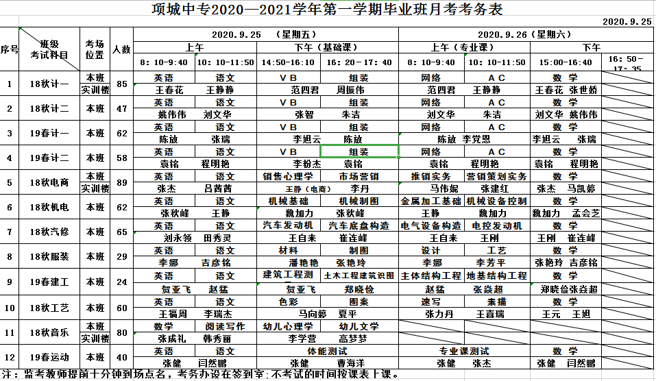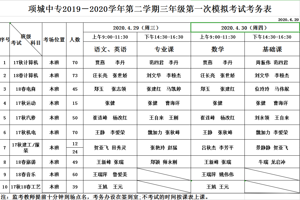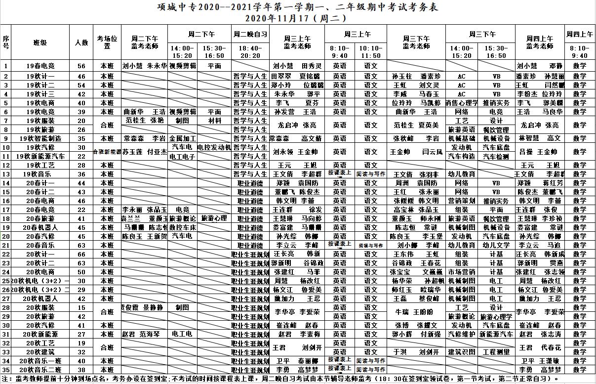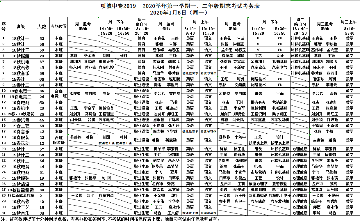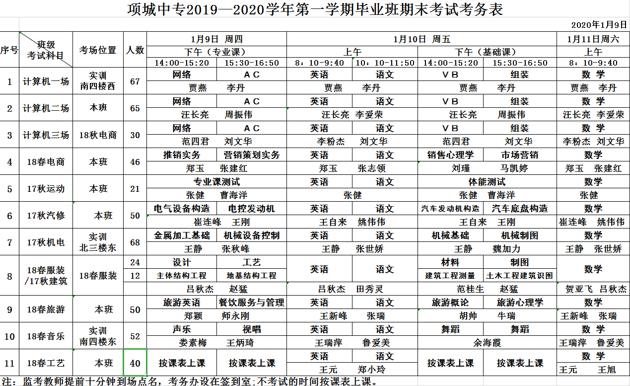 2019年1月9日——1月11日上午,项城中专2019—2020学年举行第一学期毕业班、综合高中期末考试。