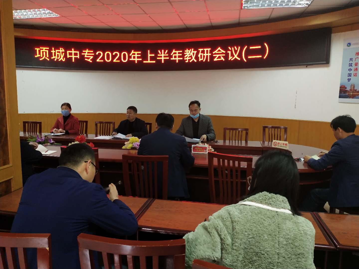 2020年5月11日上午在办公楼二楼会议室召开项城中专2020年上半年教研业务会议。会议由师群力主任主持,教研室主任李党恩、教务副主任田秀灵及各专业部···