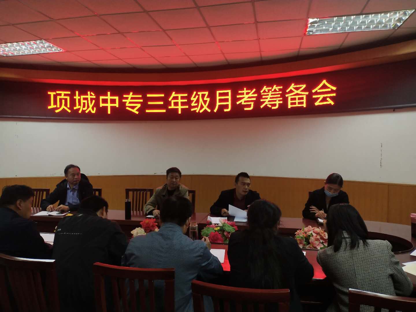 2020年10月26日上午,在办公楼二楼会议室召开了项城中专2019年三年级第四次阶段性考试筹备会。张锦军副校长,教务处师群力主任、田秀灵副主任,教研室···