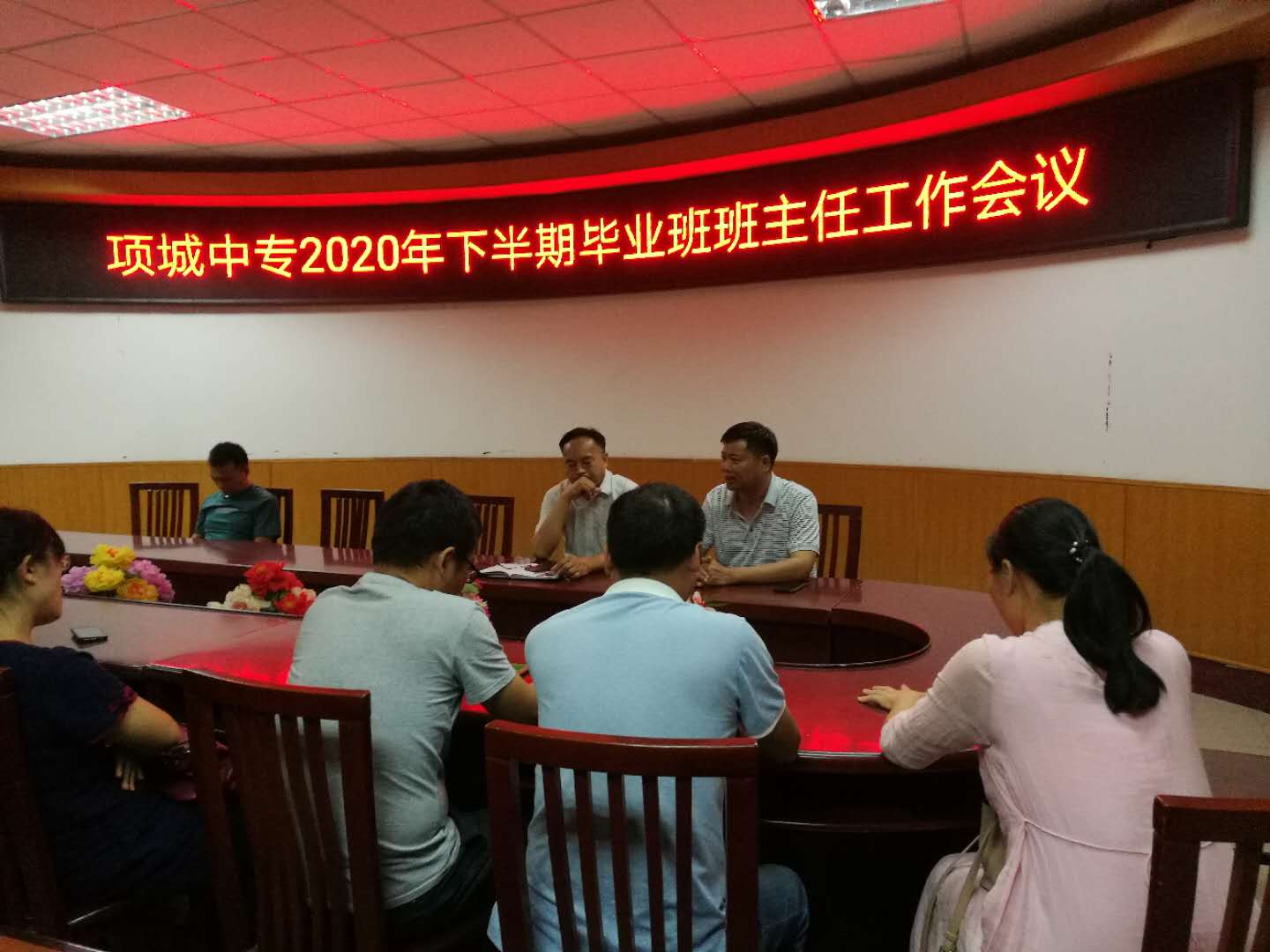 2020年9月3日下午,在二楼会议室召开项城中专2020下半期毕业班班主任工作会议。教务处主任师群力,教研主任李党恩,政教处主任张成礼及三年级班主任参···
