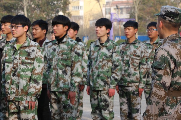 本次军训训练场地在我校操场上举行的。尽管天气还有点寒冷,但我校的新生学子们热情不减,精神抖擞地参与到了各个项目训练当中。军训中,在部队教官亲切的关怀和严格训练下,齐步走、正步走、齐步变正步、解散、集合及分列式等预定训练科目已初见成效。教官手把手教,学生认真的学,在军训队列比赛中,方队整齐,精神饱满,步伐矫健、口令准确、声音嘹亮。