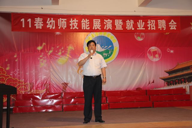 首先,高校长对来我校参加招聘的各幼儿园园长的到来表示欢迎,并对即将走向工作岗位的各位学生寄予深切的厚望,要求各位学生在今后的工作中尽心尽力,为项城中专的发展添砖加瓦。