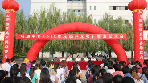 金秋九月,笑语盈园。2013年9月15日下午,项城中专全体师生在学校篮球场隆重召开2013-2014学年度上学期开学典礼暨表彰大会。大会由学校副校长王云昭主持,开学典礼在庄严的国歌声中拉开帷幕。