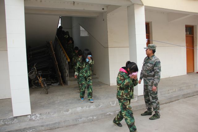 下午2:00正,随着学校紧急疏散演练小组总指挥高必星校长倒计时报数声结束,疏散警报声随即拉响,同学们在寝室长带领下,紧张、有序地从各自寝室涌向疏散通道,教师、军训教官随队管理。从一楼到四楼,分东、西两头,同学们按紧急疏散演练程序,迅速撤离寝室,跑到指定的安全地带——操场,担任安全员的教师最后撤离现场。全校住宿新生,不到2分钟全部疏散完毕。随后,学生进行灭火演习,8名学生代表按照事先学会的灭火器使用要领,在教官的带领下手持灭火器,喷向熊熊烈火,几秒钟将火浇灭。