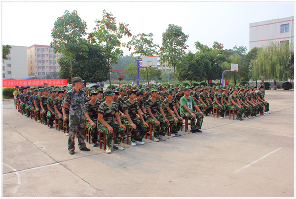 8月25日下午15:00时,我校2014年秋季新生军训汇报表演暨表彰大会在校篮球场举行。到会领导有:主管政教、团委工作的付校长,政教处张主任,校团委汪书记,政教处王主任、魏主任,校团委郑书记。全体新生向学校领导汇报展示了军训成果。