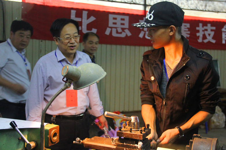 随后,余卫国局长一行深入比赛赛场进行观看指导。在服装技能比赛区,他亲切与监考教师和裁判交谈,详细询问了比赛的流程、评判标准,嘱咐老师们一定要公平公正进行评判,认真筛选出优秀技能人才。一个个散落在桌上空调零部件,密密麻麻的线头,在比赛学生手里,只是几分钟功夫,一台空调挂机就初现原形,在电子电工比赛区,他认真观看了学生制冷与空调设备组装和调试比赛,禁不住连声称赞鼓掌。在信息技术类比赛现场,动画片制作比赛正在如火如荼进行。鲜活的卡通人物,逼真的动画场景,惟妙惟肖的声音,带人进入一个神奇美妙的世界,在场观看比赛的老师们都禁不住鼓起掌来。