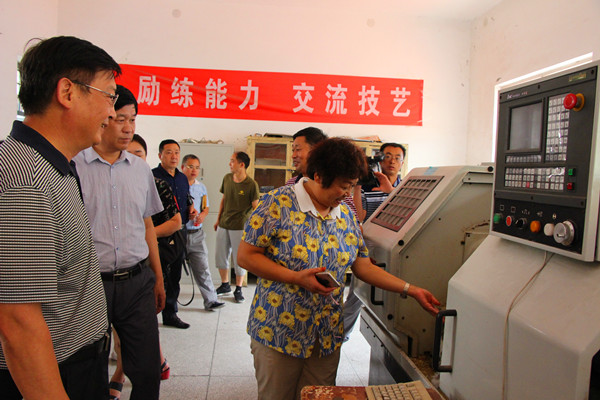在项城中专实训基地,孙春花一行仔细参观了数控、计算机、服装等实训基地,对该校实训基地建设情况给予赞扬。在拥有800台高配置的计算机实训机房,孙春花仔细询问机房管理员学生实习上课等情况,当她听说该专业学生已连续三年考上天津大学后,表示一定将学校宝贵的升学经验带回去,好好学习和研究。在服装实训基地,孙春花认真听取该校服装专业建设及毕业生就业情况,并对学生制作的服装进行了点评,她鼓励服装专业老师应加快与企业对接速度,与市场对接力度,制作出特色,打拼出品牌。