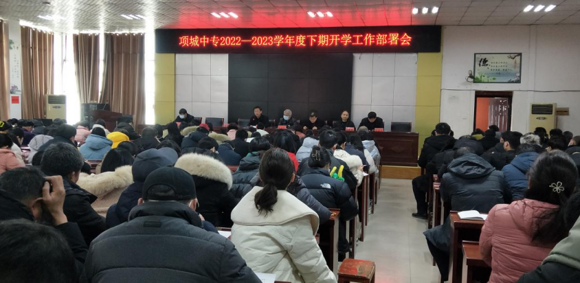 2月3日,项城中专在实训楼五楼会议室召开2022-2023学年第二学期全体教职工大会,通报上学年工作完成情况,部署新学期重点工作。