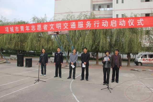 10月31日,在我校篮球场举办了“项城市青年志愿者文明交通服务行动启动仪式”,市人大常委会副主任张春志,团市委书记郭昕等出席本次仪式。11月1日,我校又请市交通大队长袁航同志为我校学生进行交通指挥知识培训,以便我校志愿者能更加规范的协调交通,服务广大市民。11月2日,我校志愿者迈着整齐的步伐,走向我市主要交通路口。他们规范的动作、热情的服务、耐心的讲解,赢得了广大市民的一致好评。面对广大市民的赞扬,我校志愿者表示:以后会更加积极地参加这类公益活动,用自己的实际行动为我市的“和谐、文明”贡献一份力量。