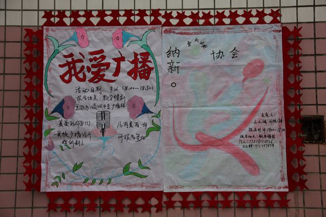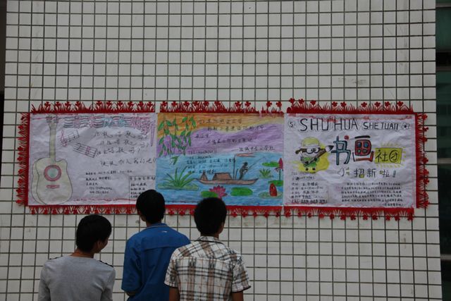 金秋九月,无数莘莘学子抱着激动的心情来到了我校,在参加了为期半个月军训的时候,可能会感觉到有一些枯燥。不过,在九月二十四日,教学楼前出现了不一样的颜色-----各个协会五彩缤纷的纳新海报。
