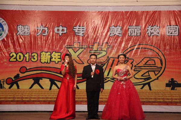 为了庆贺新年的到来,校工会、团委、政教处、音幼专业部于2013年1月4日星期五晚18:00,在校礼堂隆重举办了“项城中专2013新年文艺晚会”,晚会的主题是“魅力中专、美丽校园”。出席晚会的有校委会领导、老师及全体学生。