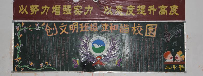 新学期,新气象。转眼就是我们伟大祖国的生日了,作为一名普通的中专生,虽不能为祖国做出什么大贡献,但也希望通过自己的行动为祖国的繁荣富强做出自己应有的贡献。为此校团委特组织各班用黑板报的形式来表达对祖国的热爱。此次活动得到了各班级积极响应,各班同学各展风采。通过此次活动展现了学生的才华,表达了对祖国、对校园的无比热爱之情。各班的黑板报版面设计优美整洁、主题鲜明突出、内容丰富多彩、书写规范工整,充分体现出同学们的自主创新能力。同学们通过生动活泼的版面设计,张扬身边的好人好事,在全校营造出了浓厚的人人讲文明礼貌,争做好人好事的氛围,为创建平安、和谐、健康校园奠定良好基础。