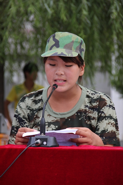 9月2日下午16:00时,我校2013年秋季新生军训汇报表演暨表彰大会在校篮球场举行。到会领导有:高校长,主管师训工作的王校长,主管教务工作的张校长,主管政教、团委工作的付校长,主管招生、就业、电大、函授工作的陈校长,政教处张主任,周口军分区教导队的师队长,大会由校团委书记汪长亮主持。全体新生向学校领导和周口军分区教导队的首长汇报展示了军训成果。