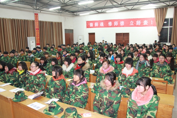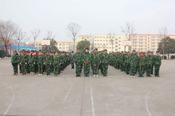 白雪皑皑,树也银装,天也湛蓝,2014年2月9日项城中专2014级新生军训正式拉开了序幕。来自我市各个乡镇、各个学校的学子们齐聚项城中专,军训场上的他们还显得对这个学校是那么的生疏。有着丰富军训经验的我校,在十几天的军训期间为他们的一场场丰富多彩的活动:新生军训动员会、养成教育会、法制安全教育会、安全疏散演习、拉军歌、整理寝室内务等,这些生动活动的开展相信在不长的时间内一定会给他们一个温馨的感觉,教会他们如何适应中专的生活,教会他们如何养成良好的生活、学习习惯,教会他们一门生活的本领。