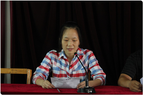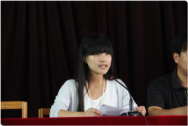 考取天津大学的闫晨晨同学在动员会上发言