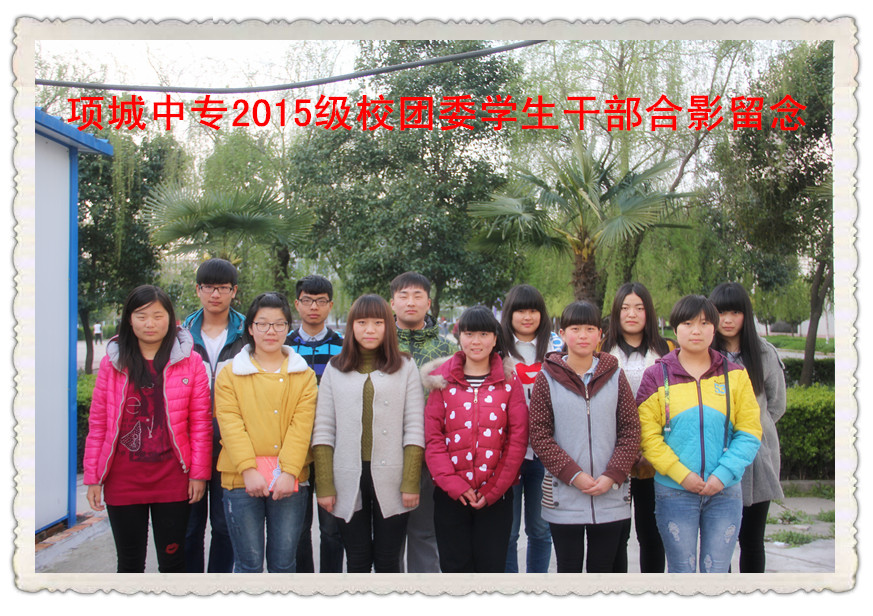 一排(从左至右):沈鑫鑫(15春电子班) 崔璐祯(14秋计一班) 张小宇(13秋计二班)刘水英(14春幼师) 贺艳丽(15春服装班) 彭金霞(13春计一班)