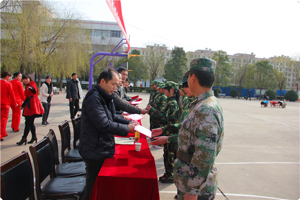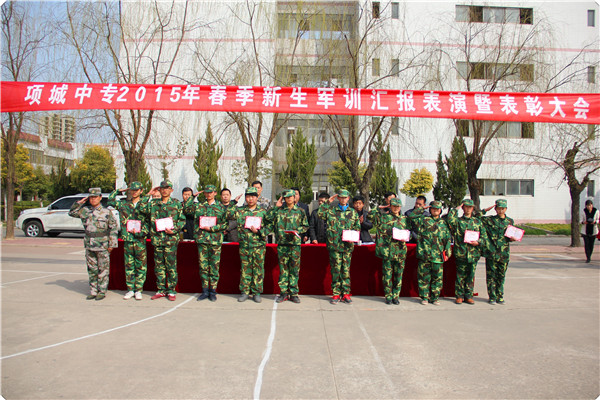 开学伊始,我校沿袭新生军训的传统,对15春新生进行了为期半个月的军事训练。本期军训工作,政教处、校团委提出了“军纪如铁,意志如钢,情系中专,创造辉煌!”的训练口号,创新开办了“军训之窗”板报,并在军训中开展了“训练标兵”、“内务整理标兵”、“优秀青年志愿者标兵”评选活动,一天一评选,一天一点评,激发了同学们的训练热情,提升了训练效果。辛苦的训练终于换来了汇报表演的圆满成功。让我们一起祝愿这些莘莘学子在项城中专放飞梦想,扬帆远航。