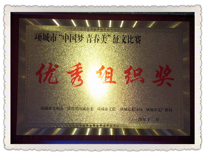 会议宣读了《关于“中国梦 青春美”征文大赛的表彰决定》。在此次征文比赛中,我校共获得了优秀组织奖,二等奖1名、三等奖2名。与会领导为获奖作品和优秀组织代表颁奖。我校团委书记汪长亮同志上台领取优秀组织奖。