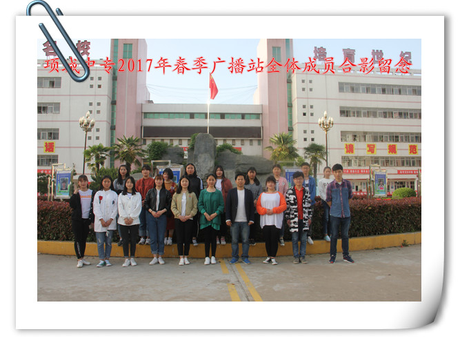 第一排(从左至右):韩如月 侯明珠 周佳琪 李笑笑 闫婷婷 周金 汪长亮(校团委书记) 黄凤娟(站长) 赵小江 魏鹏