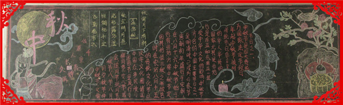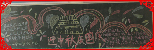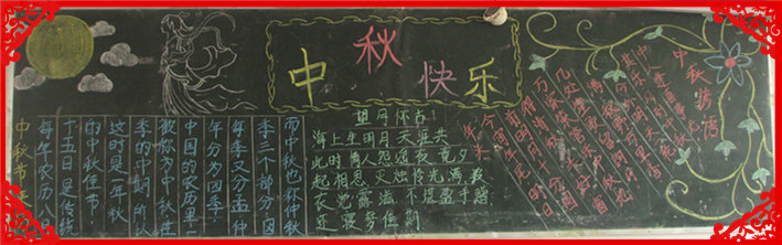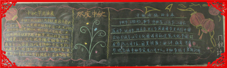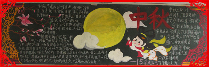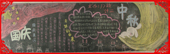 为进一步丰富校园文化,浓厚育人氛围,本学期我校开展节日、纪念日主题教育活动。在象征着团圆、平安和亲情的中秋节和象征着中华民族的新纪元的国庆节来临之际,在班主任的组织下,发扬了学生的主体参与性,各班同学用自己形式庆祝了双节。