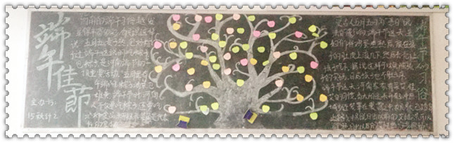 端午节的意义就是纪念历史上伟大的民族诗人屈原。它是我国最重要的传统节目,也是弘扬爱国主义精神的重要节目,我校各团支部用自己手中的粉笔以突出传统习俗为特征,以增强民俗体验为重点,将爱国主义教育贯穿始终,组织开展丰富多彩的校园文化活动,充分挖掘传统节日的深厚文化内涵,引导学生在活动中接受爱国主义教育,增进爱国主义情感,提高中华民族的凝聚力和向心力。