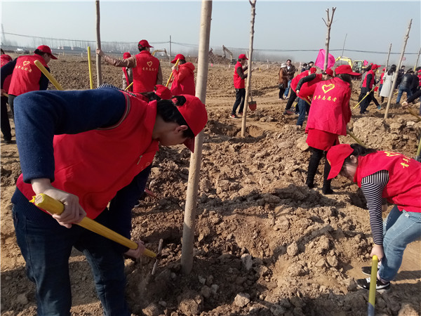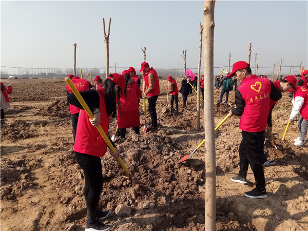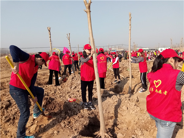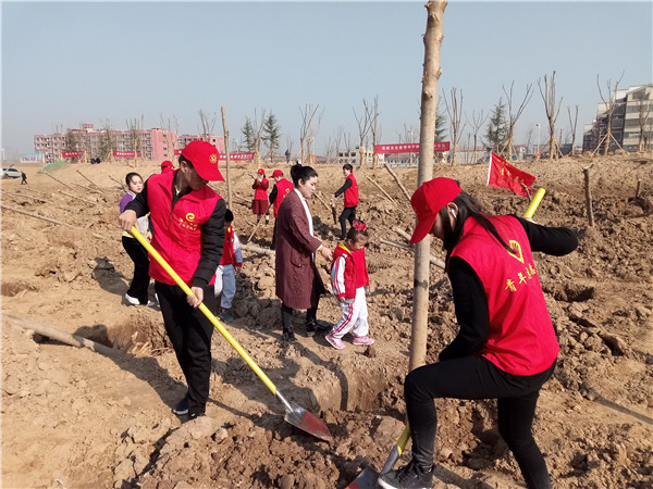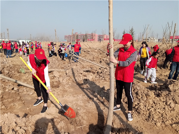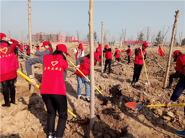 我校青年志愿者积极响应市委市政府号召,积极组织,辛勤劳动,种下一棵棵树苗,现场栽种的树苗在春风里亭亭玉立、错落有致,为我市增添了一道靓丽风景线。