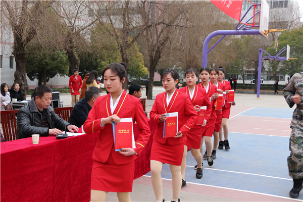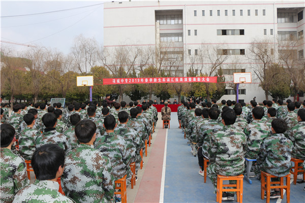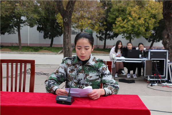 2月27日下午,我校在操场隆重举行了2019级新生军训总结表彰大会。党委书记马书记,主管总务、工会、财务工作的潘校长,主管教务工作的张校长,主管政教、团委工作的付校长,主管党务工作的王校长,主管电大、函授、招生、就业工作的陈校长,主管办公室工作的张主任,周口外训大队马队长,出席了大会。参加此次大会的还有军训工作组全体成员,所有新生班辅导员和全体军训教官。