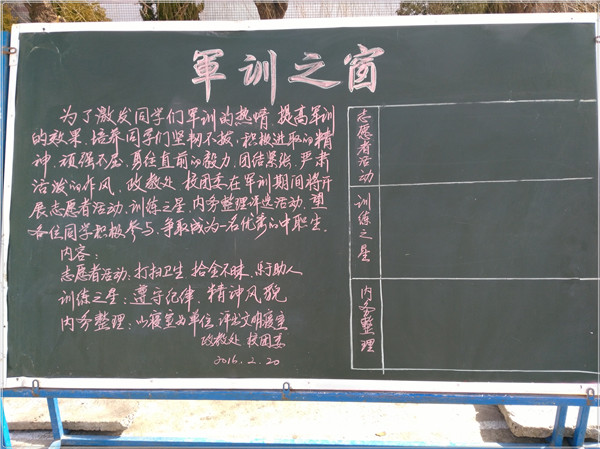 开学伊始,我校沿袭新生军训的传统,对15春新生进行了为期半个月的军事训练。本期军训工作,政教处、校团委提出了“军纪如铁,意···