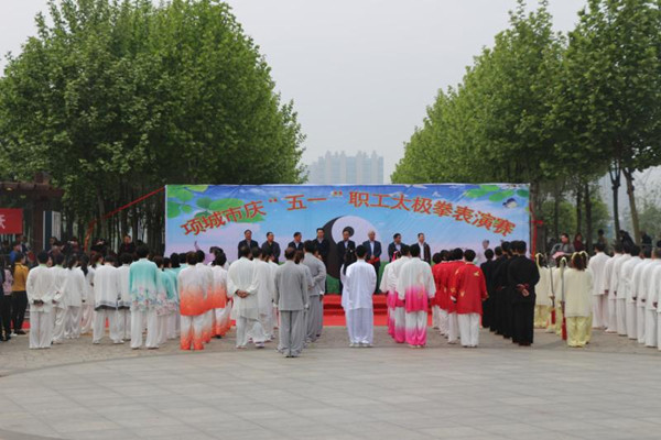 为进一步丰富职工业余文化生活,4月26日,我校太极拳参赛队参与项城市总工会在人民公园举办职工太极拳表演赛暨庆五一劳动奖状颁奖大会。市委副书记、政法委书记张文成到场观摩并宣布项城市职工太极拳表演赛开幕,市人大常委会副主任高必民致辞,市政协副主席王养领、市总工会主席李怀义、市总工会党组书记、常务副主席田雨出席开幕式。