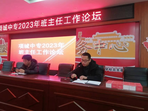 项城中专班主任工作论坛暨经验交流会2023年3月7日下午,项城中专举行班主任工作论坛暨经验交流会。本次会议由政教处汪长亮主任主持,张成礼副校长及全体班主任参与。班主任···