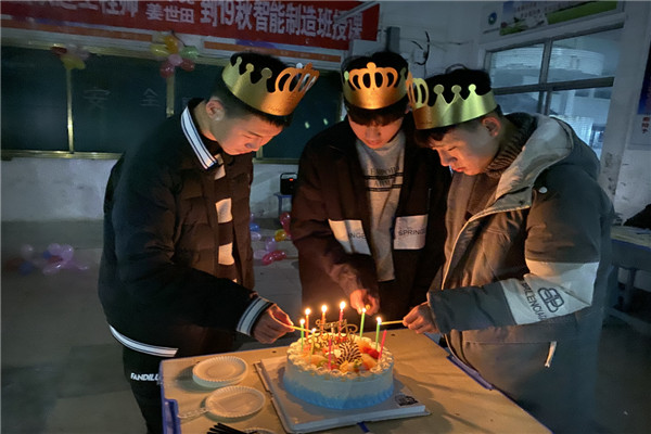 12月15日晚自习,19秋智能制造班举行了一场别开生面的主题班会。原来是在给十二月份生日的三名同学过集体生日。首先是由全体同学一起给“···