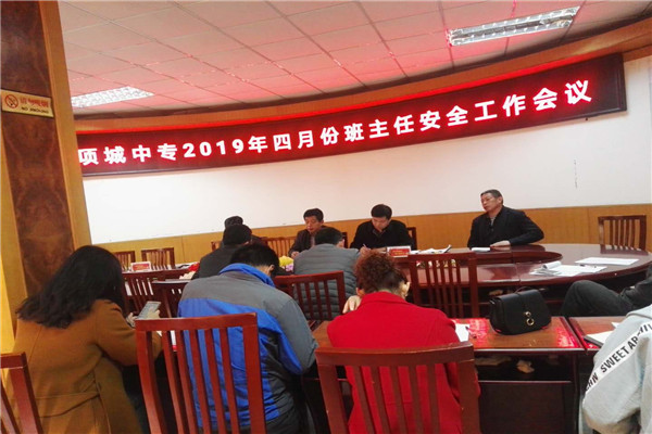 2019年4月11日,项城中专班主任安全工作会议在办公楼二楼会议室召开。 会议由政教处张主任主持,张主任强调:安全工作是学校工作的重···